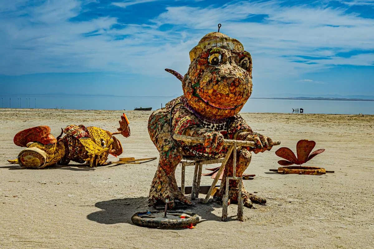 I took all the photos in the gallery below to document the unique desert vibes and trippy place we encountered. While I would have loved the long shadows of golden hour for this landscape photography, capturing the art installations and the grit of the Salton Sea in the midday sun was a great exercise in content creation. It’s a stark, visual look at what remains of the California Riviera, and I hope these shots give you a clear sense of why this road trip stop was so compelling.